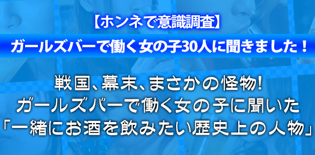 【ホンネで意識調査】戦国、幕末、まさかの怪物!ガールズバーで働く女の子に聞いた「一緒にお酒を飲みたい歴史上の人物」