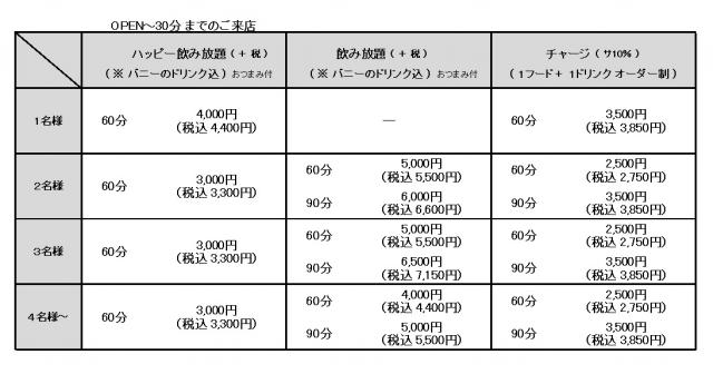 今までと同じく、「ドリンク飲み放題+おつまみ+バニードリンク込」となります◎