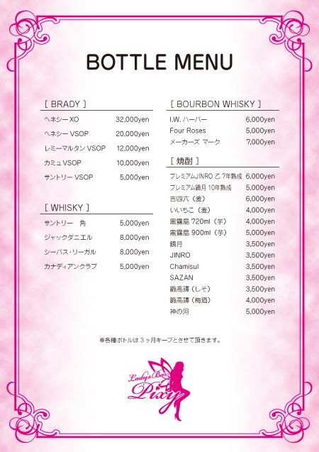 | 営業時間 | 日〜木:20:00~翌2:00 金土祝日前:20:00~翌5:00 |